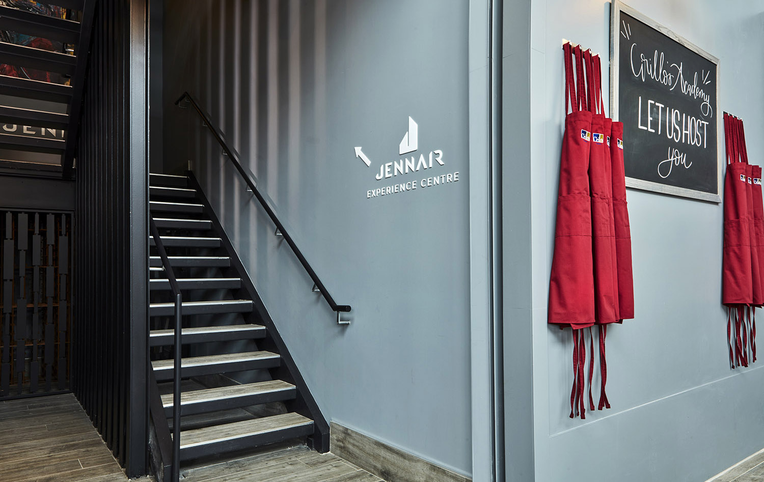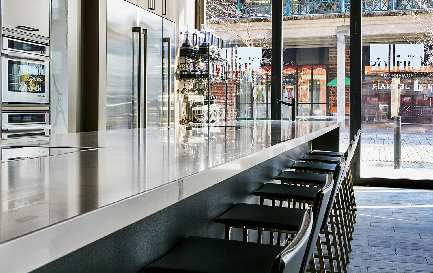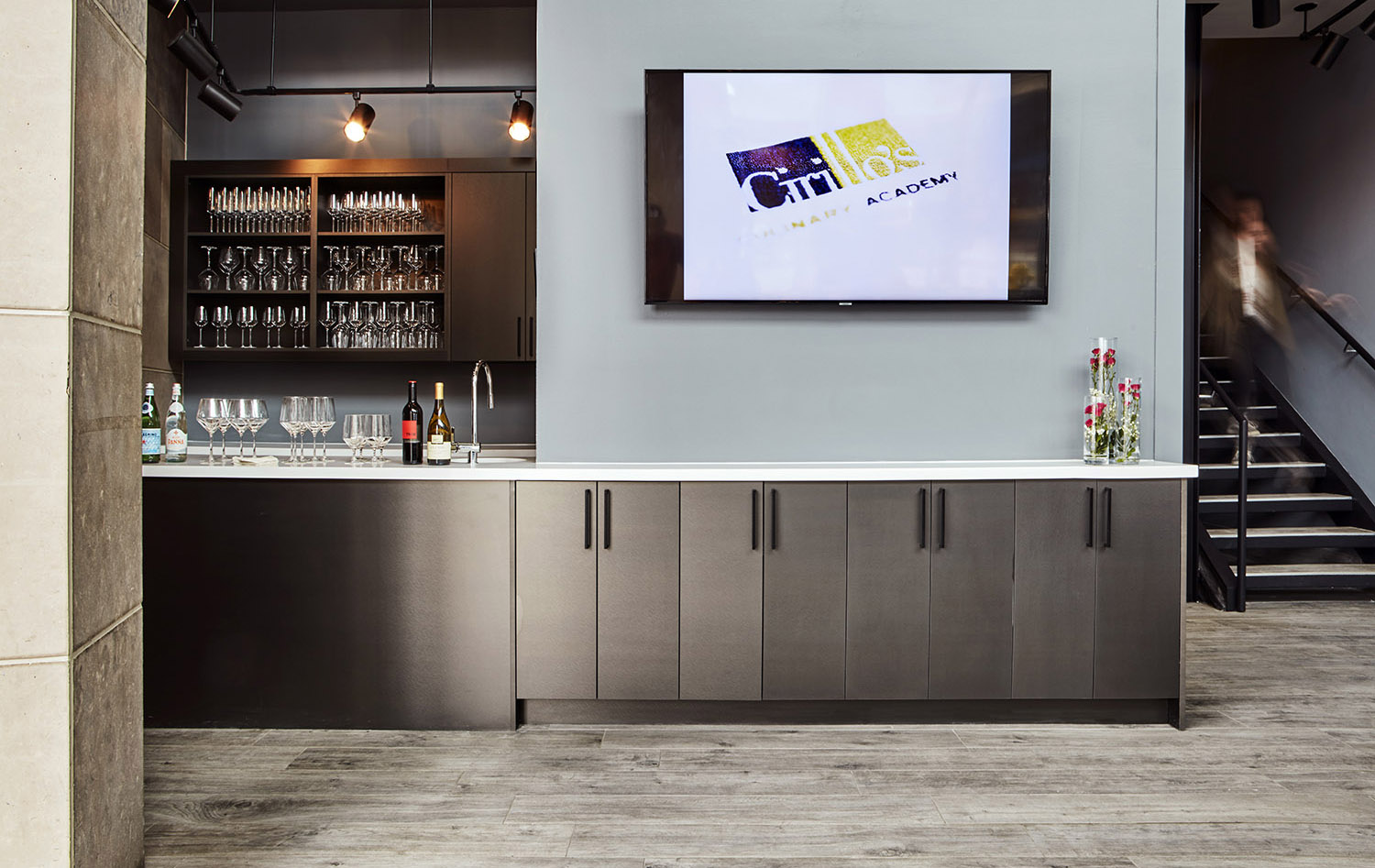 - 65” LCD screen in main area, camera connected to capture demo cooking
